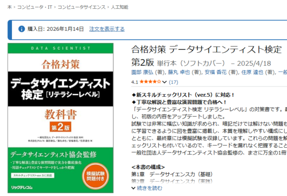 ![合格対策 データサイエンティスト検定[リテラシーレベル]教科書 第2版](https://m.media-amazon.com/images/I/41zE8iRloeL._SL160_.jpg)