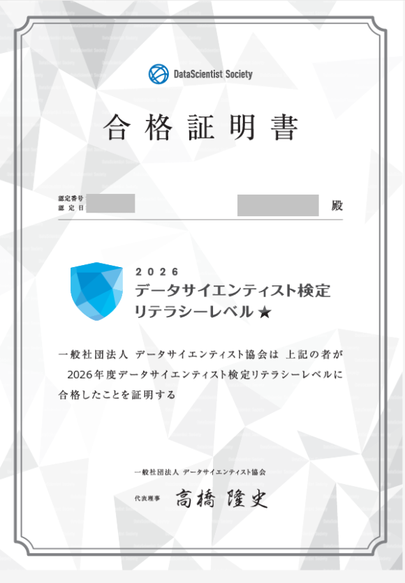 明らかに「いやいやこれDSと直接関係ないやろ、情報処理試験ですやん」というような問題が1問あって笑いました。知っていたのでラッキーでしたが、問題集だけで攻めている人には捨て問ですね。そうじゃなくても全体的に情報処理技術者試験の経験者は有利だと思います。ですからG検定・DS検定・ITパスポートの3つ全て合格するともらえる「DX推進パスポート」デジタルバッジを目指している人は、ITパスポートに合格してからDS検定を受験するといいんじゃないでしょうか。難易度的にも。